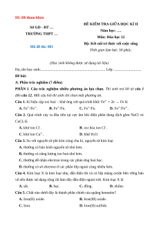 ĐỀ KIỂM TRA GIỮA HỌC KÌ II Môn: Hóa học 12