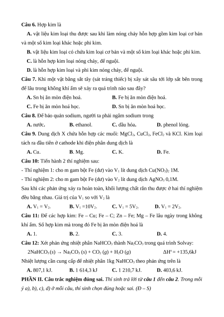 PHẦN I. Câu trắc nghiệm nhiều phương án lựa chọn. Thí sinh trả lời từ câu 1