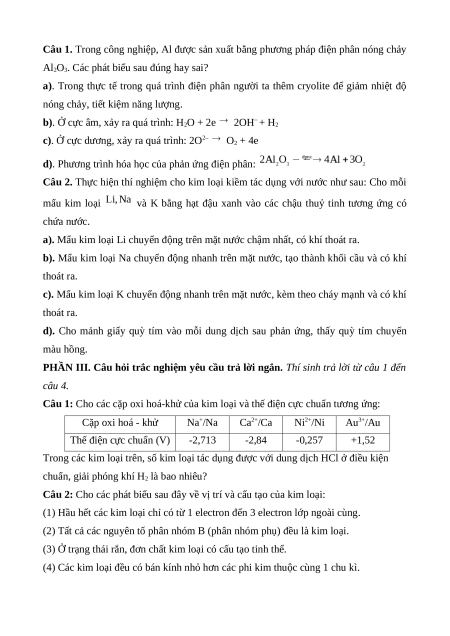 Câu 3. So với nguyên tử phi kim cùng chu kì, nguyên tử kim loại