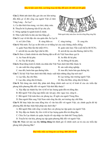 Câu 11: Bao trùm trong xã hội Âu Lạc thời Bắc thuộc là mâu thuẫn giữa