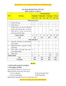 Nhận biết Thông hiểu Vận dụng VD cao TN TL TN TL TN TL TN TL Phân môn Lịch sử 1 Nước Văn Lang 3 3 2 Nước Âu Lạc 3 3
