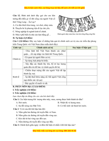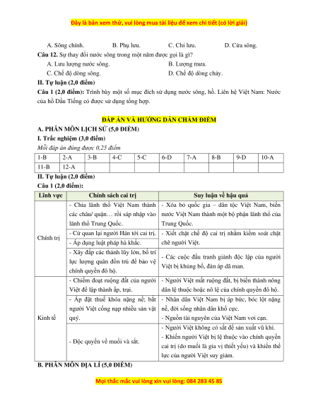 Câu 1 (2,0 điểm): Hãy suy luận về những hậu quả từ chính sách cai trị của các triều đại phong