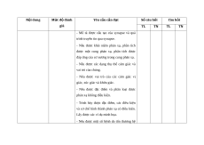 Quan sát quá trình bi n ế 2 0,5 (0,25) (0,25) thái đ ở ng v ộ t ậ . S câu ố 0 16 0 12 2 0 1 0 3 28 Đi m s ể ố 0 4 0 3 2 0 1 0 3 7 10 c. Bảng đ c t ặ ả Nội dung M c đ ứ đánh ộ Yêu c u c ầ n đ ầ t ạ S câu h ố i ỏ Câu hỏi giá TL TN TL TN Bài 17. C m ả ng ứ ở Nhận bi t ế