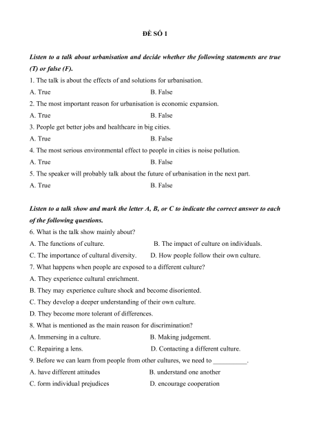 1. The talk is about the effects of and solutions for urbanisation. A. True B. False