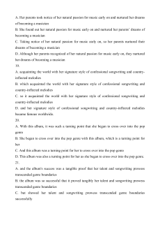 D. This album was also a turning point for her as she began to cross over into the pop genre. 21.