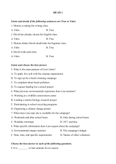 3. Monica thinks David should take the beginner class. A. False B. True 4. David works part-time. A. False B. True