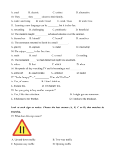 9. It is ________ to hurt animals for no reason. A. cruel B. electric C. extinct D. alternative