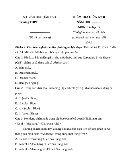 - Tailieugiaovien.com.vn giới thiệu bộ 3 đề giữa kì 2 gồm đầy đủ ma trận và lời giải chi tiết môn Tin học 12 Cánh diều mới nhất năm 2025 nhằm giúp Giáo viên có thêm tài liệu tham khảo ra đề thi Tin học 12.