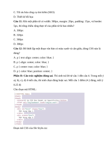 Câu 1: Thuộc tính nào sau đây chỉ áp dụng cho phần tử dạng khối? A. margin. B. padding. C. border-style. D. width.