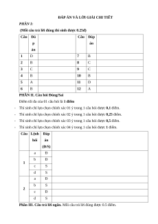 Phần I: Câu trắc nghiệm nhiều phương án lựa chọn. (Mỗi câu đúng 0.25)