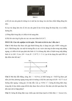 Câu 2: Một đoạn dây dẫn nằm ngang được giữ cố định ở vùng từ trường đều trong khoảng
