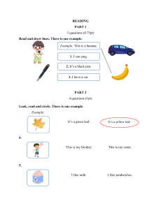 Example: This is a banana. 1. I can sing. 2. It’s a black pen. 3. I have a car. PART 2 4 questions (1pt)
