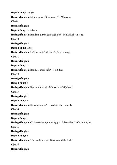 Hướng dẫn dịch: Tên của bạn là gì? - Mình tên Linda. Câu 6 Hướng dẫn giải: Đáp án đúng: old
