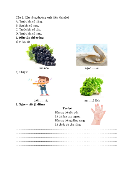 1. Đọc câu chuyện sau và trả lời các câu hỏi (3 điểm) Cầu vồng