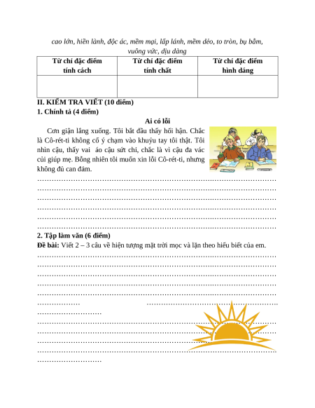 II. KIỂM TRA VIẾT (10 điểm) 1. Chính tả (4 điểm) Ai có lỗi