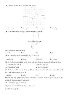Câu 8. Hàm số nào dưới đây có đồ thị như hình vẽ sau? x x x x A. y . B. y . C. y . D. y . x 1 x 1 x 1 x 1