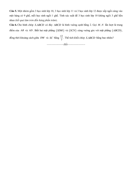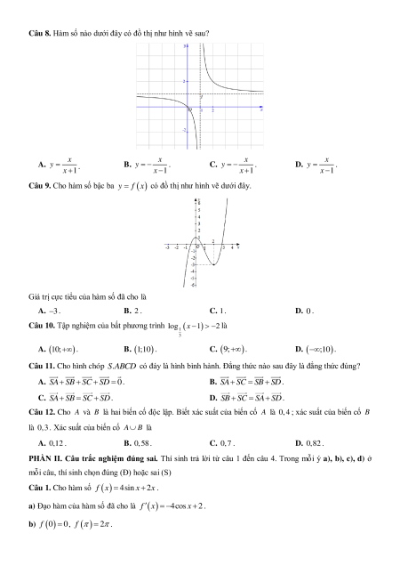 PHẦN I. Câu trắc nghiệm nhiều phương án lựa chọn. Thí sinh trả lời từ câu 1 đến câu 12. Mỗi câu thí