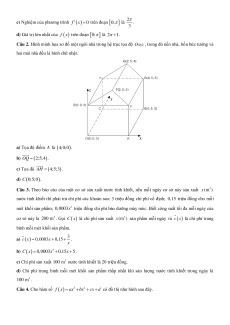 d) Chi phí trung bình mỗi mét khối sản phẩm thấp nhất khi sản lượng nước tinh khiết trong ngày là 3 100 m . Câu 4. Cho hàm số 3 2