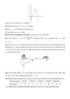PHẦN III. Câu trắc nghiệm trả lời ngắn. Thí sinh trả lời từ câu 1 đến câu 6. x x