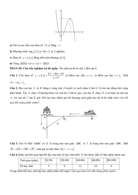 a) Giá trị cực tiểu của hàm số f x bằng 1. b) Phương trình log