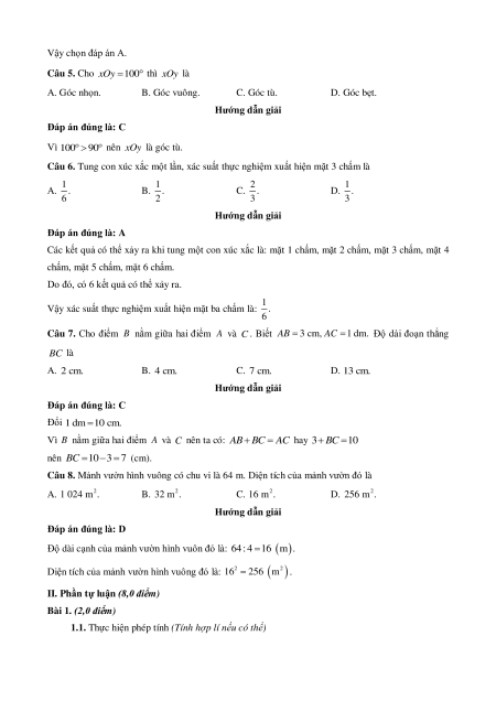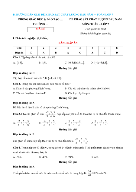 B. HƯỚNG DẪN GIẢI ĐỀ KHẢO SÁT CHẤT LƯỢNG ĐẦU NĂM − TOÁN LỚP 7