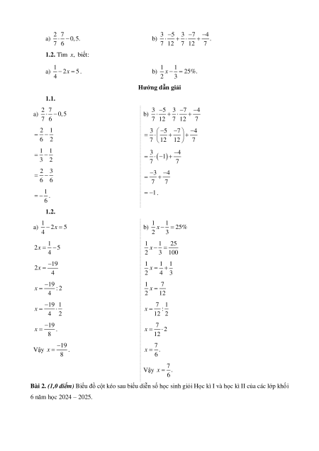 1.1. Thực hiện phép tính (Tính hợp lí nếu có thể) 2 7 3 5 3 7 4 a) 0,5. b) . 7 6 7 12 7 12 7
