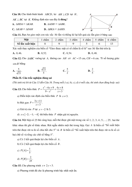AK BC tại K. Khẳng đi ̣nh nào sau đây là đúng? A. H DA∽ KA . B B. A DH ∽ A BK. C. KA B∽ D AH D. B KA∽ A H . D