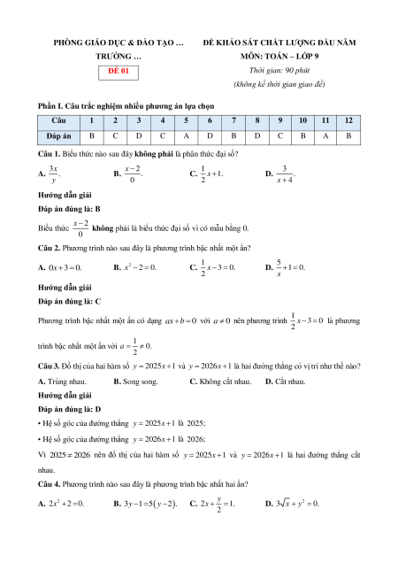 Bộ 3 đề thi khảo sát chất lượng đầu năm Toán 9 năm 2025 (có đáp án)