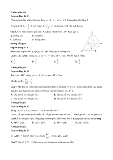 Xác suất thực nghiệm của biến cố “Gieo được mặt có số chấm là số lẻ” sau 50 lần thử trên là A. 0, 46. B. 0, 52. C. 0, 54. D. 0, 48. Câu 12. Cho ABC vuông tại ,