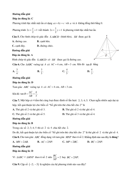 Câu 5. Cho hình chóp tứ giác đều S.ABCD (hình bên), SH được gọi là