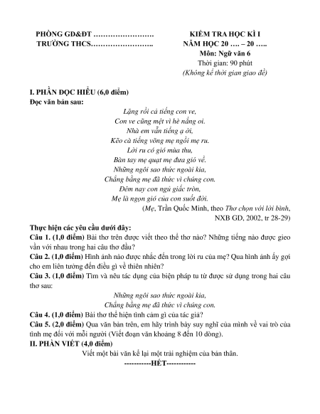I. PHẦN ĐỌC HIỂU (6,0 điểm) Đọc văn bản sau:
