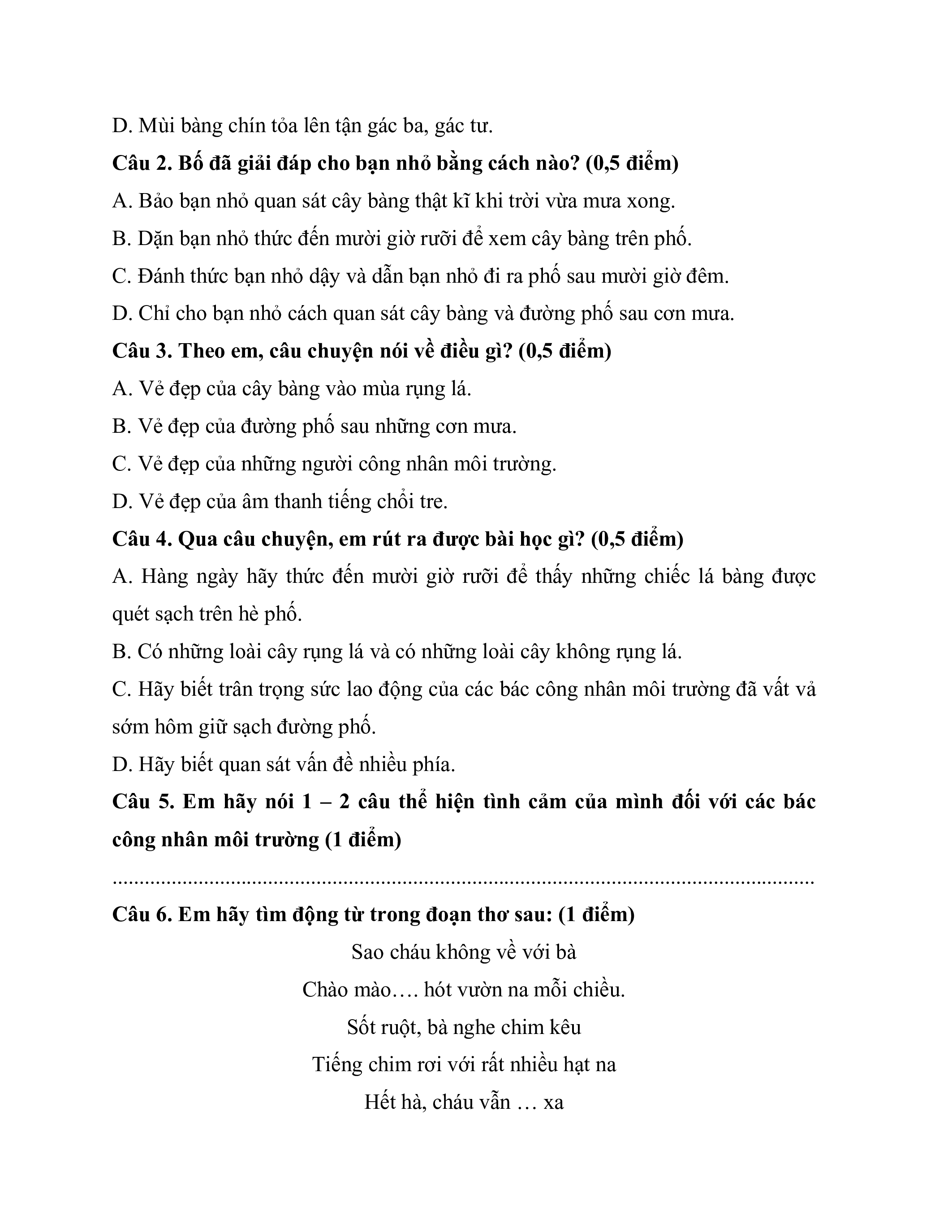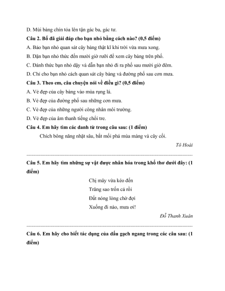 D. Chỉ cho bạn nhỏ cách quan sát cây bàng và đường phố sau cơn mưa.