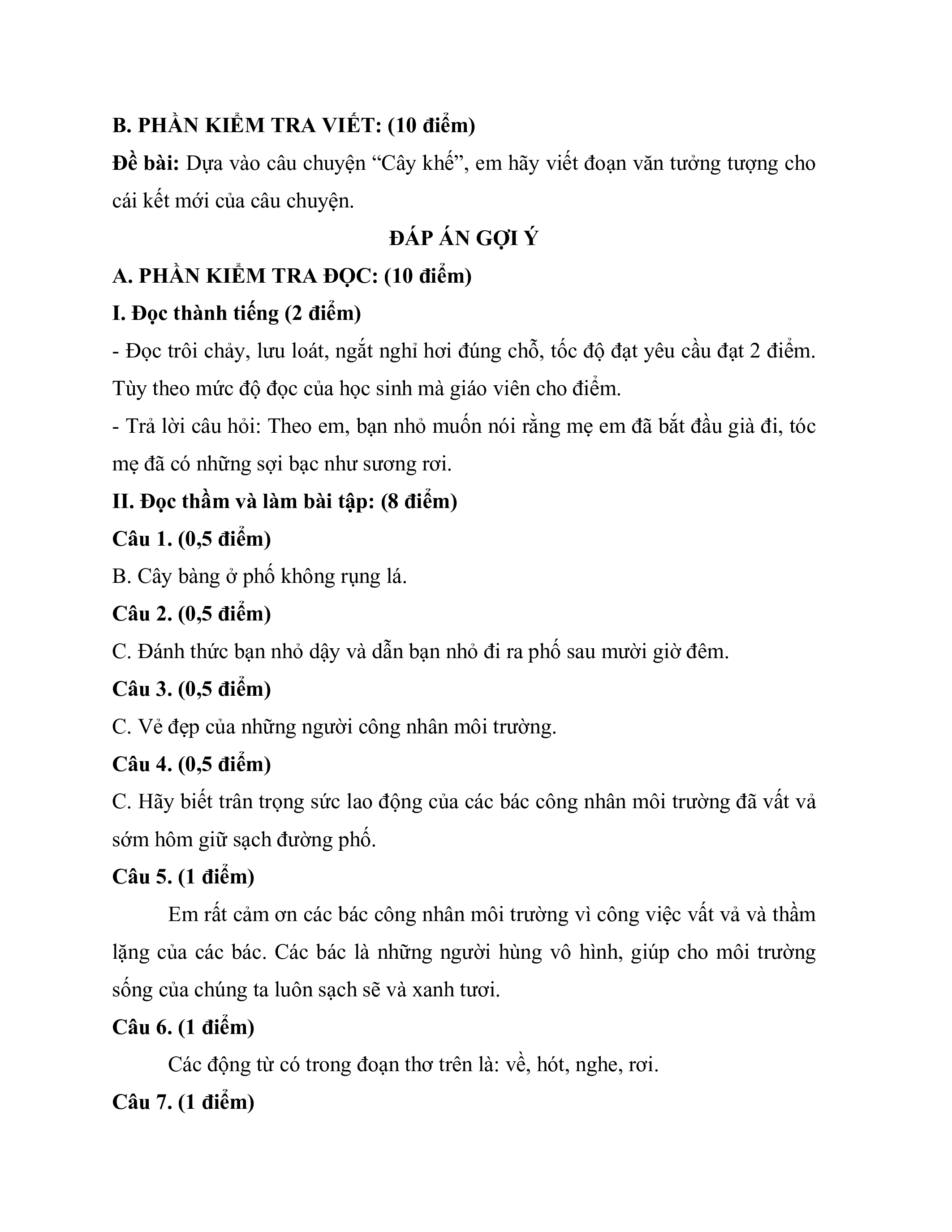 A. PHẦN KIỂM TRA ĐỌC: (10 điểm)