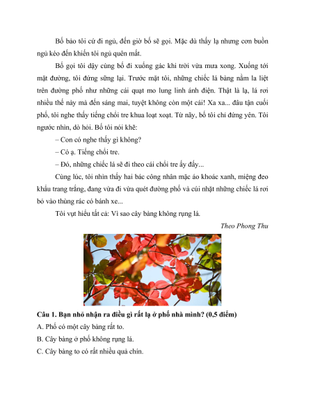 Câu 1. Bạn nhỏ nhận ra điều gì rất lạ ở phố nhà mình? (0,5 điểm)