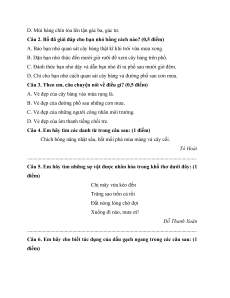 Sau khi HS đọc thành tiếng xong GV đặt 01 câu hỏi để HS trả tiếng Số lời. điểm 4 Số câu 2 1 3 Đọc Câu hiểu số 1,2 3 Số điểm 1 0,5 1,5 Số Kiến câu 2 2 4 thức Câu tiếng số 4, 6 5, 7 việt Số điểm 2 2,5 4,5 Số Tổng câu 2 1 2 2 8 Số điểm 1 0,5 2 2,5 10