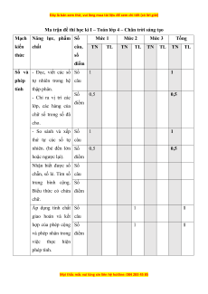Ma trận đề thi học kì I – Toán lớp 4 – Chân trời sáng tạo