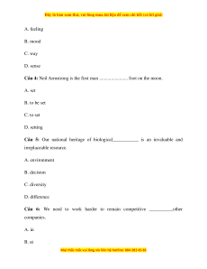 Câu 4: Neil Armstrong is the first man ........................ foot on the moon. A. set B. to be set C. to set D. setting