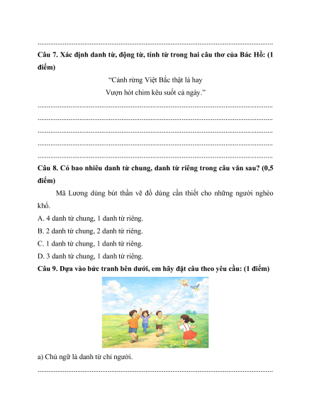 Câu 8. Có bao nhiêu danh từ chung, danh từ riêng trong câu văn sau? (0,5 điểm)