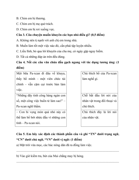 Câu 5. Em hãy xác định các thành phần câu và ghi “TN” dưới trạng ngữ,