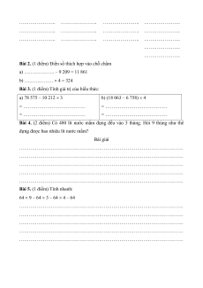 Bài 2. (1 điểm) Điền số thích hợp vào chỗ chấm