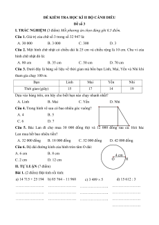 Ma trận đề thi học kì II – Toán lớp 3 – Cánh diều