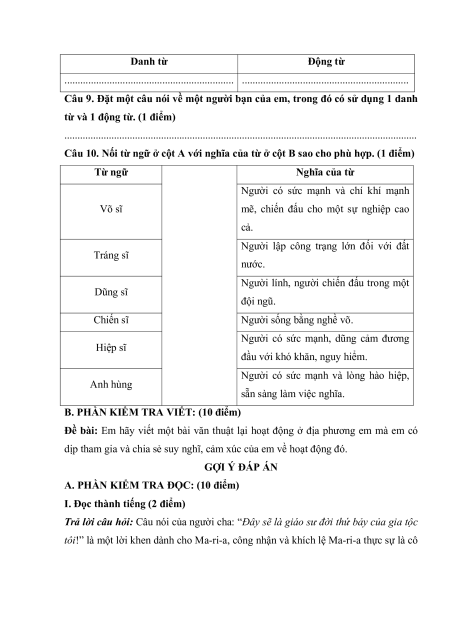 Câu 10. Nối từ ngữ ở cột A với nghĩa của từ ở cột B sao cho phù hợp. (1 điểm) Từ ngữ Nghĩa của từ