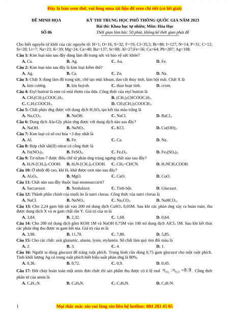 Bài thi: Khoa học tự nhiên; Môn: Hóa Học SỐ 06