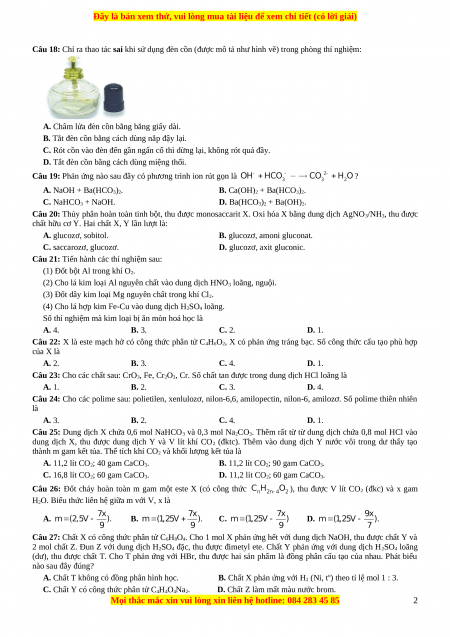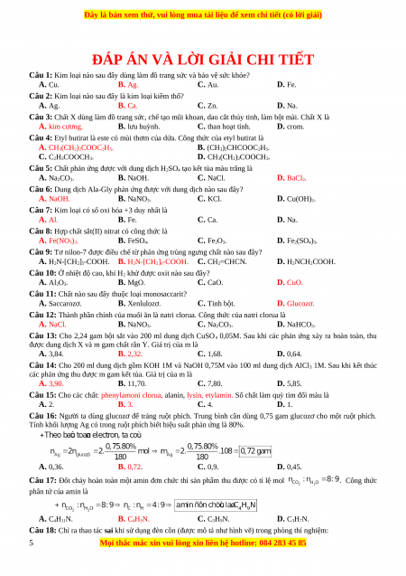 Câu 6: Dung dịch Ala-Gly phản ứng được với dung dịch nào sau đây? A. NaOH. B. NaNO3. C. KCl. D. Cu(OH)2.