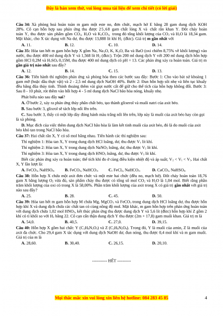 Câu 36: Tiến hành thí nghiệm phản ứng xà phòng hóa theo các bước sau đây: Bước 1: Cho vào bát sứ khoảng 1