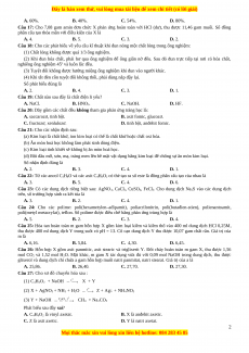 Câu 2: Kim loại nào sau đây là thành phần của hợp kim dùng làm chất trao đổi nhiệt trong một số lò phản ứng hạt nhân? A. Li. B. Ca. C. K. D. Cs.
