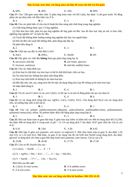 Câu 17: Cho 7,08 gam amin đơn chức X phản ứng hoàn toàn với HCl (dư), thu được 11,46 gam muối. Số đồng