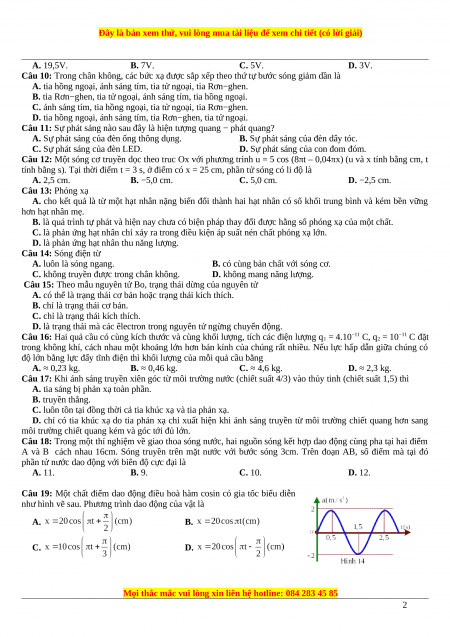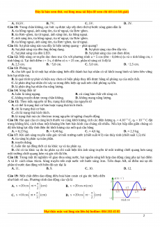 tính bằng s). Tại thời điểm t = 3 s, ở điểm có x = 25 cm, phần tử sóng có li độ là A. 2,5 cm. B. −5,0 cm. C. 5,0 cm. D. −2,5 cm. Câu 13: Phóng xạ