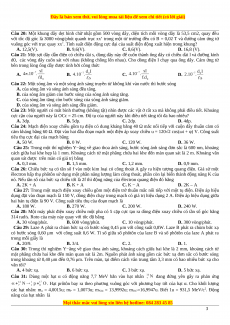 Câu 29: Laze A phát ra chùm bức xạ có bước sóng 0,45 μm với công suất 0,8W. Laze B phát ra chùm bức xạ