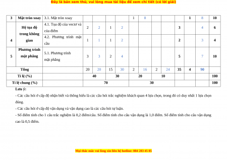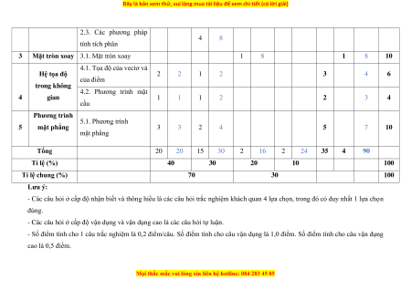 Phương trình 5.1. Phương trình 5 mặt phẳng 3 3 2 4 5 7 10 mặt phẳng Tổng 20 20 15 30 2 16 2 24 35 4 90 Tỉ lệ (%) 40 30 20 10 100 Tỉ lệ chung (%) 70 30 100 Lưu ý: